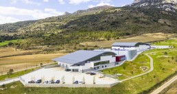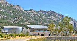 Está dividida en 3 naves comunicadas entre sí: la nave Agua, donde se focaliza la entrada de uva y la elaboración, con 45 depósitos de 10.000 litros en roble y acero inoxidable; la nave Tierra, que acoge la zona de crianza en barrica y botella; y la nave Sol, donde se ubican las oficinas y la zona de expedición de producto.